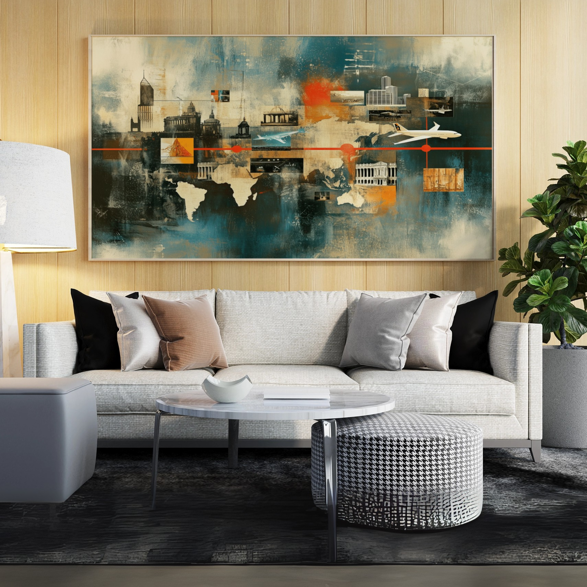 Vibrant World Monuments Map Canvas - Colorful Travel-Inspired Wall Art. High Resolution Digital Download 300 DPI.