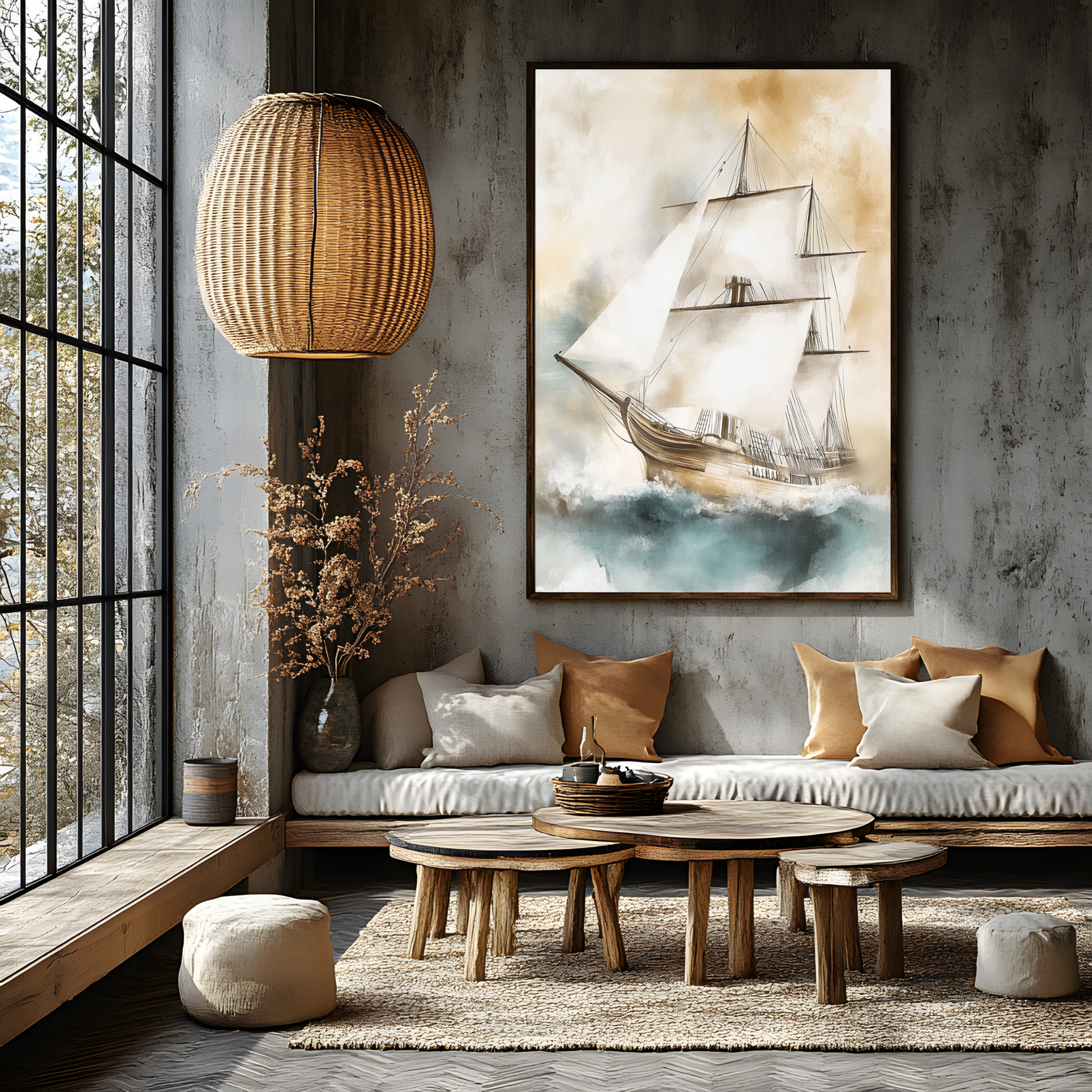 Bring timeless maritime charm to your space with this vintage-style wall art showcasing an old-fashioned sailing ship braving the rough sea. The detailed depiction of churning ocean waves and the majestic ship’s sturdy masts evoke the spirit of seafaring adventure and classic nautical exploration. The bold, dramatic composition makes it a perfect centerpiece for any room inspired by oceanic or coastal themes. Ideal for adding character to living rooms, offices, or nautical-themed spaces, this piece captures both the power and romance of the open sea. Whether you love historical maritime design or appreciate bold, dynamic artwork, this print delivers both nostalgia and visual impact.