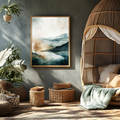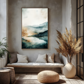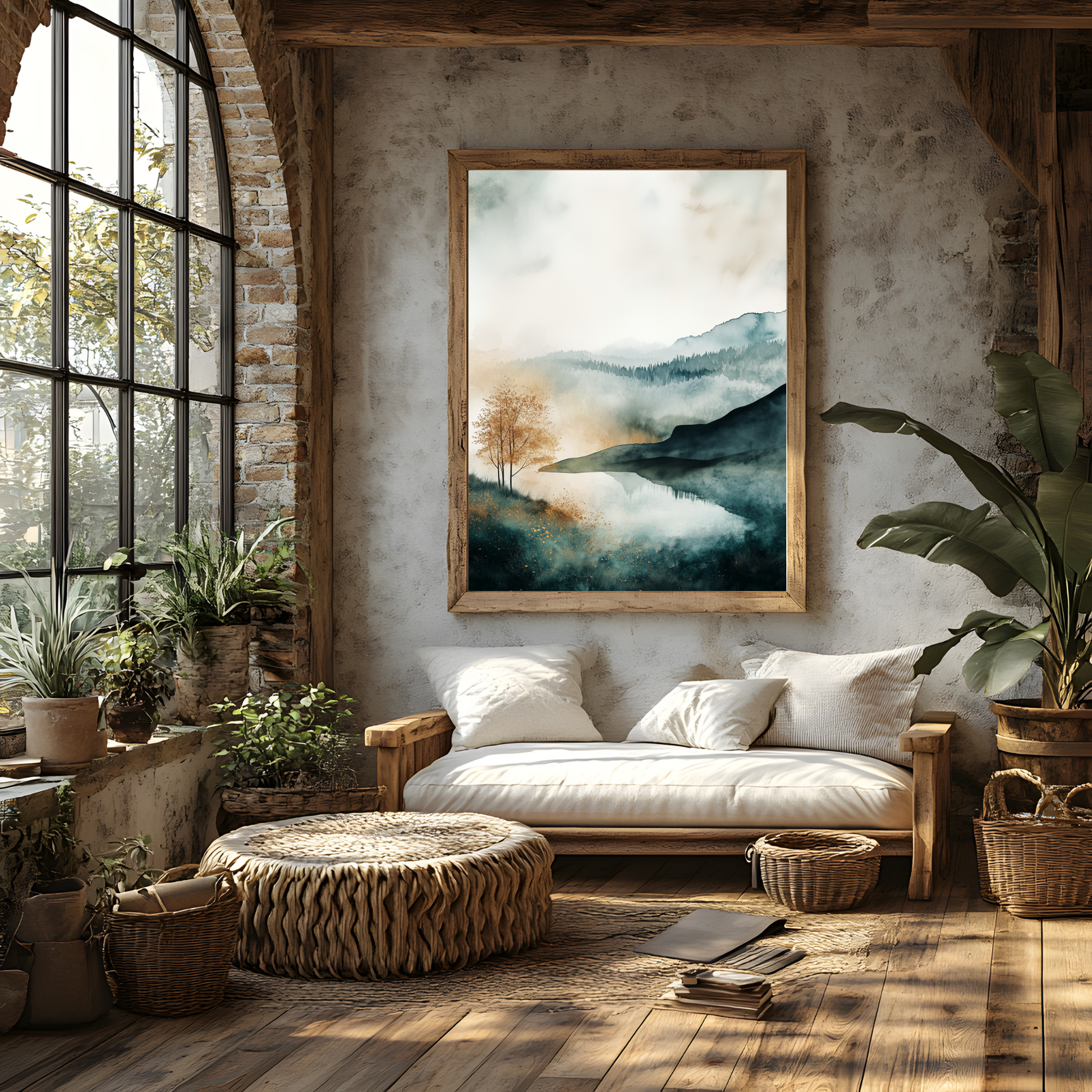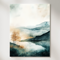 Add elegance to your space with this stunning watercolor landscape wall art. Featuring softly faded hills and trees rendered in beige, dark green, and black tones, this artwork exudes a serene and sophisticated aesthetic. The addition of a gold glitter palette brings a touch of luxury and shimmer, making it a perfect accent piece for modern or classic interiors. This art is ideal for creating a calming atmosphere in your living room, bedroom, or office. The harmonious blend of muted colors and metallic accents ensures versatility, complementing a variety of decor styles. Whether displayed as a centerpiece or part of a gallery wall, this watercolor landscape will elevate your home with its timeless beauty and artistic charm.