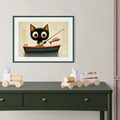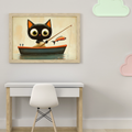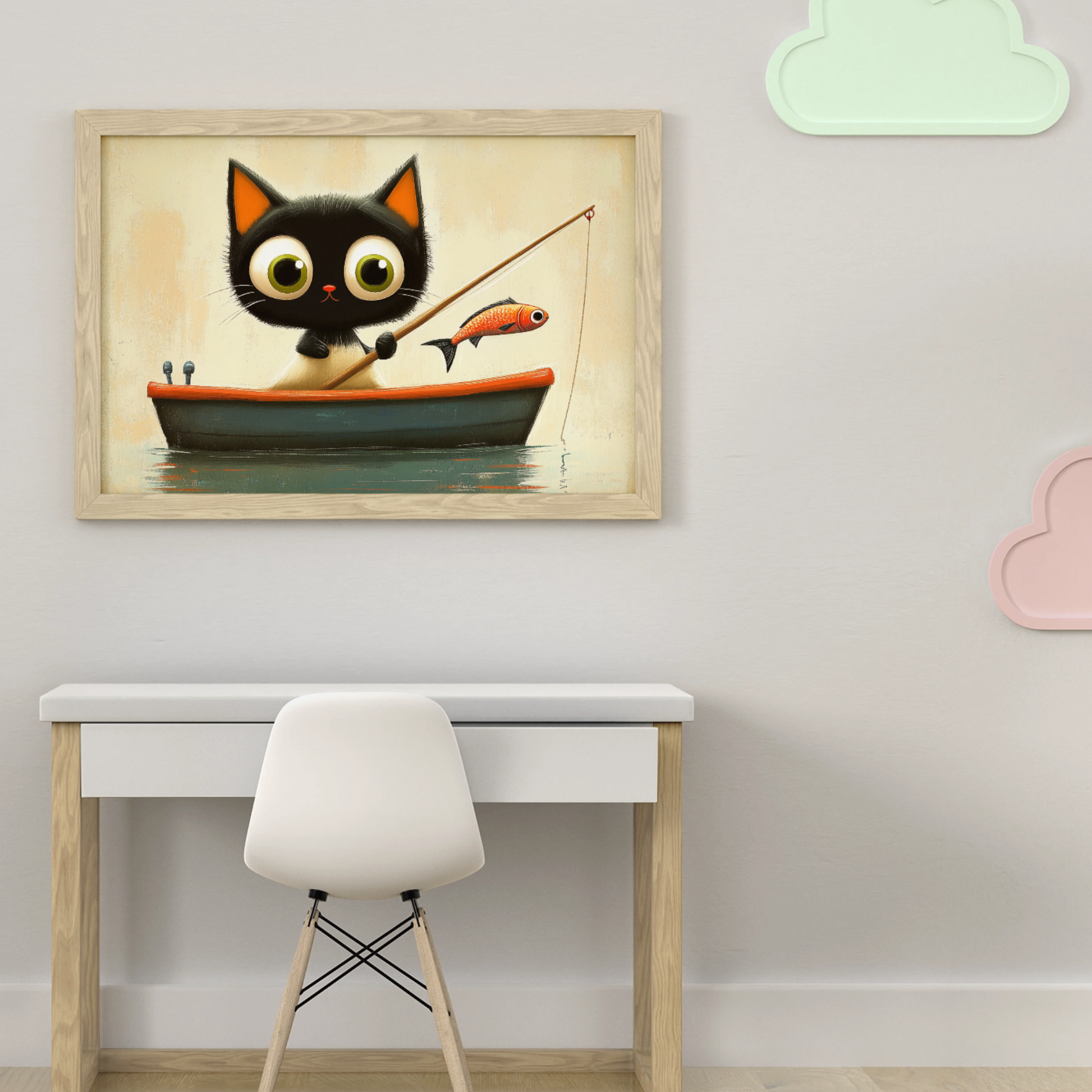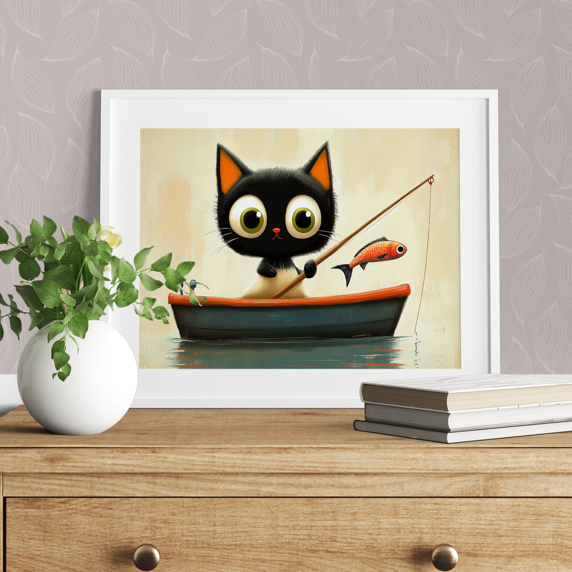 Bring a touch of whimsy and charm to your space with this delightful watercolor painting of a big-eyed kitten's fishing adventure. This elegant artwork captures the essence of playfulness and innocence in a vibrant, cartoon-inspired style that's sure to bring smiles to viewers of all ages. The artist's skillful use of watercolors brings this cartoon scene to life with soft, blended hues that add depth and texture to every detail. From the kitten's expressive eyes to the ripples in the water, each element is rendered with care to create a cohesive and captivating image. Perfect for cat lovers, fishing enthusiasts, or anyone who appreciates whimsical art, this cartoon watercolor print adds a pop of color and joy to any room. Ideal for nurseries, children's bedrooms, playrooms, or as a quirky addition to living spaces, this artwork serves as a delightful conversation starter and a source of daily smiles.