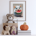 Whimsical Watermelon Feast: Cute Hamster Oil Painting Canvas Print. High Resolution Digital Download 300 DPI.
